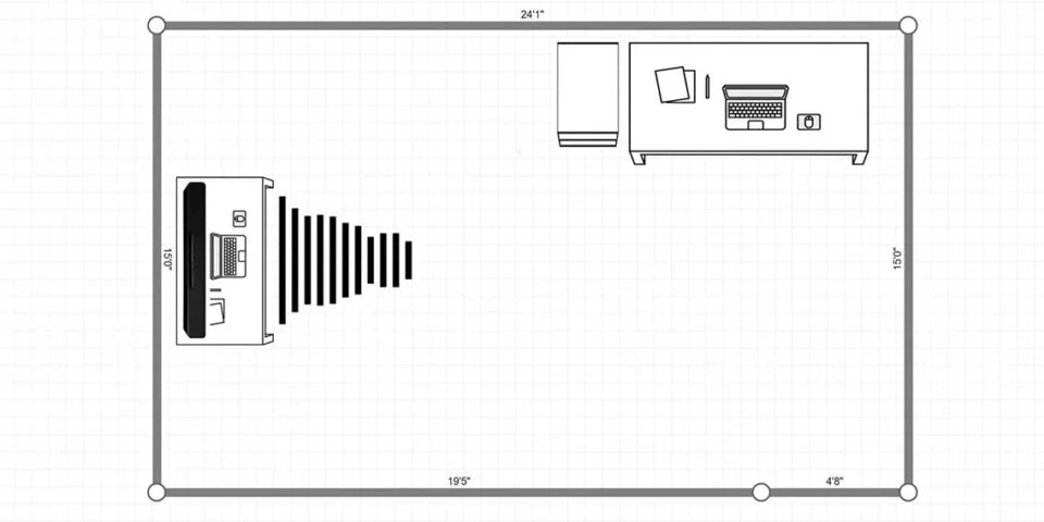 Ideally you want the soundbar somewhere in the center of the room to give you the best rebounce of the audio. For example, in this configuration with my room wider than it is deep, when I’m slightly further away from the soundbar it gives me really nice stereo sound imaging. You can’t really tell where the speaker is in front of you, it’s like this big audio source in front of you and not just tiny speakers. However, when I relocated the soundbar to my other wall, which is deeper, I had this much better rear channel definition and depth than I had in the earlier configuration. Basically, room size and placement are important, especially for console gamers who are slightly further away and you can hear more of that rebounce of the audio, whereas for PC gamers like myself this thing right in front of you, regardless of where it is in my room it doesn’t make that have a significant difference.