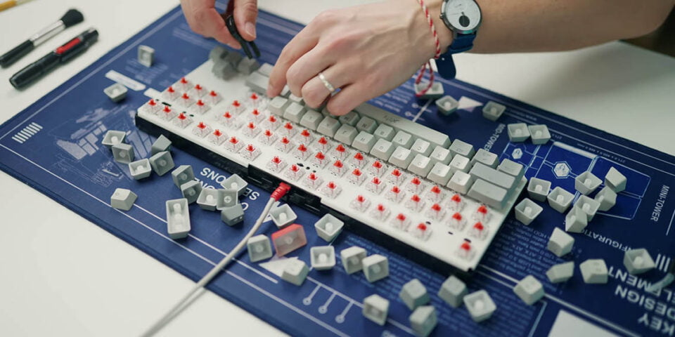 I want to tell you about this keyboard, I’ve been using the XTRFY K40 TKL RGB for 2 years now, it has been my go-to ever since it launched in 2019. Naturally after all that time there is some gunk accumulation. Nothing has been spilled over, it is just particles, but it got gunky on the keycaps and on the actual frame, there is also a bunch of crap underneath the keycaps.