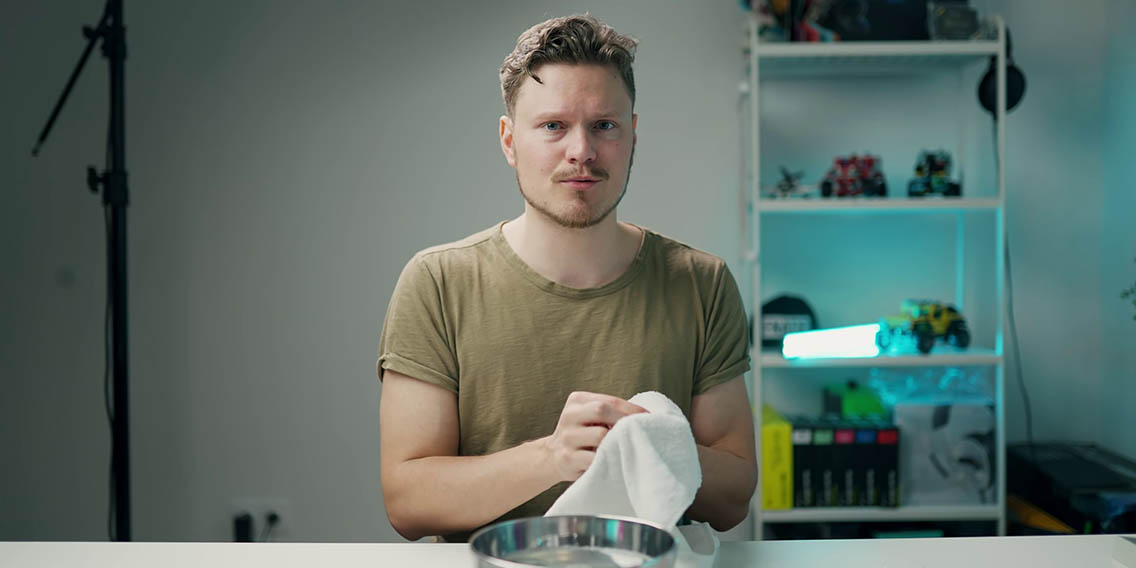 The next thing is for our keycaps to take a nice soapy bath. Not only will this get rid of any gunk that is underneath the keycap near the stem, but also help to dissolve any of that grease and gunk that has accumulated over time on the actual surface. Now I did say that I’m pretty impressed with how clean it is, but at closer inspection it is actually quite nasty, not just the large hair particles, but if you go really close with the macro lens you can see just a gunk accumulation.