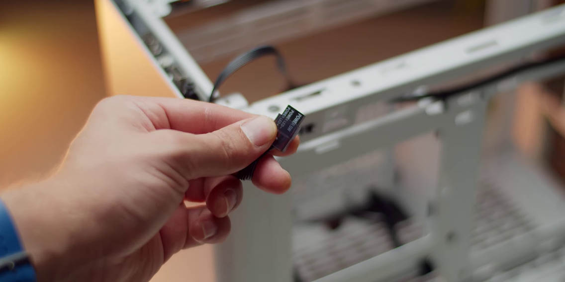 First let’s start with the little things like the front panel connector, because there are numerous small connectors and they are pain in the butt in wire. They are flimsy pins and the small writing makes it easy to get wrong. It’s actually the very first thing I cable manage because accessing the front I/O port on the motherboard is not easy once the GPU installed. A solution to this would be to remember how the cables align on the motherboard by reading the manual, using a flashlight and going carefully. Also don’t swap the reset and power switches, because that will anxiety trying to understand why the computer is not starting. Some motherboards used to include the front-panel Q-Connector, like on ASUS motherboards, but I haven’t seen it recently. Thankfully there is maybe hope from the case side because on my Cooler Master NR200 the front I/O cables are bunched together in this plastic housing, which makes installation so much easier.