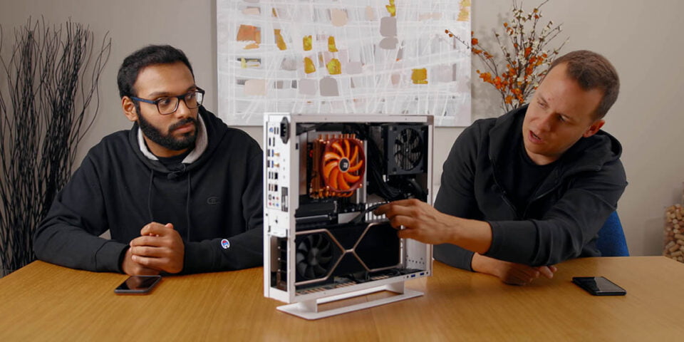 Mike: Yeah, you left it here so I did a couple things to it. I tried different things with cable management, because in an ITX system like this cable management and getting those cables out of the air flow path is one of the most important things that you can do, especially when it comes to an air cooled system like this. My only issue when it came to actually working on this build is the RTX 3080, specifically where the power connector comes out of, because on this card you can route it upwards or you can route it parallel to the card but there it gets even messier and it comes into contact with other motherboard components.