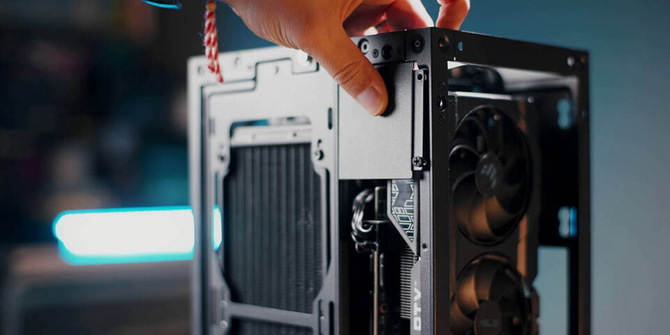 One more thing is that you can remove the top panel where you can reveal these dual fan slots, which can handle 80mm fans on the left or the right side to help with GPU cooling. This bracket will be removable if you are not using that space for fans ad it will give you a little bit extra clearance for the GPU.
