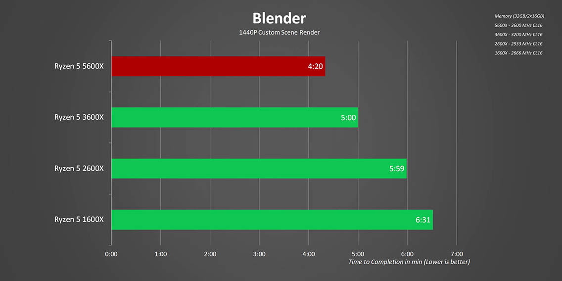 As for video rendering, in a lot of situations GPUs have become a bottleneck but there is something important going on here too. If you are still on first generation Zen, moving up will be life changing. It seems like for these types of applications there is a point where memory bandwidth starts to matter in a big way, especially when it comes to quickly feeding the GPU with information and that is one area seriously lacking in the 1600X and other CPUs from that generation.