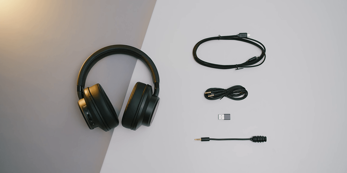 First of all, it’s pretty competitively priced at $129 USD. It is going against the Sennheiser PC37X and the Logitech G Pro X, but this being a USB Type-C headset you are not relying on any sound processing based on your motherboard or your sound card, as all the processing is done on the headset. The USB Type-C cable here is reinforced Kevlar, whatever that means, but I’m guessing it’s pretty strong. However, it does send a bunch of cable noise directly into the ear cup, so you better not have this rub against your shirt or somewhere else around or move too much with yjr headset because all that movement will be audible. Since it is a USB Type-C headset we have a USB Type-A to USB Type-C dongle, which is pretty compact and most likely will be attached to the actual cable when you travel or when you need to replug it in if you don’t have a USB Type-C cable available on your machine. However, there is no way to actually store this with the headset, so I would recommend plugging it into the cable if you don’t want to lose it.